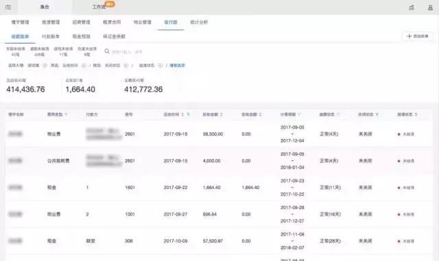 除了日常租金,业主方与客户间还有其他账目往来,包括保证金、物业费、水电费、停车费等诸多类别。而在“收付款”模块内,上述各项应收款都可以通过CREAMS一键生成费用明细,用户还可以设置智能提醒功能,在账单到期时导出账单,发送给客户。