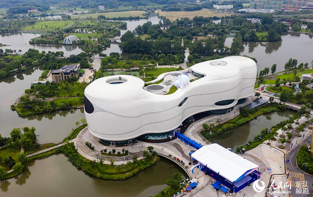 6月26日,航拍中国动漫博物馆。该馆通体呈白色,形似祥云。人民网章勇涛摄