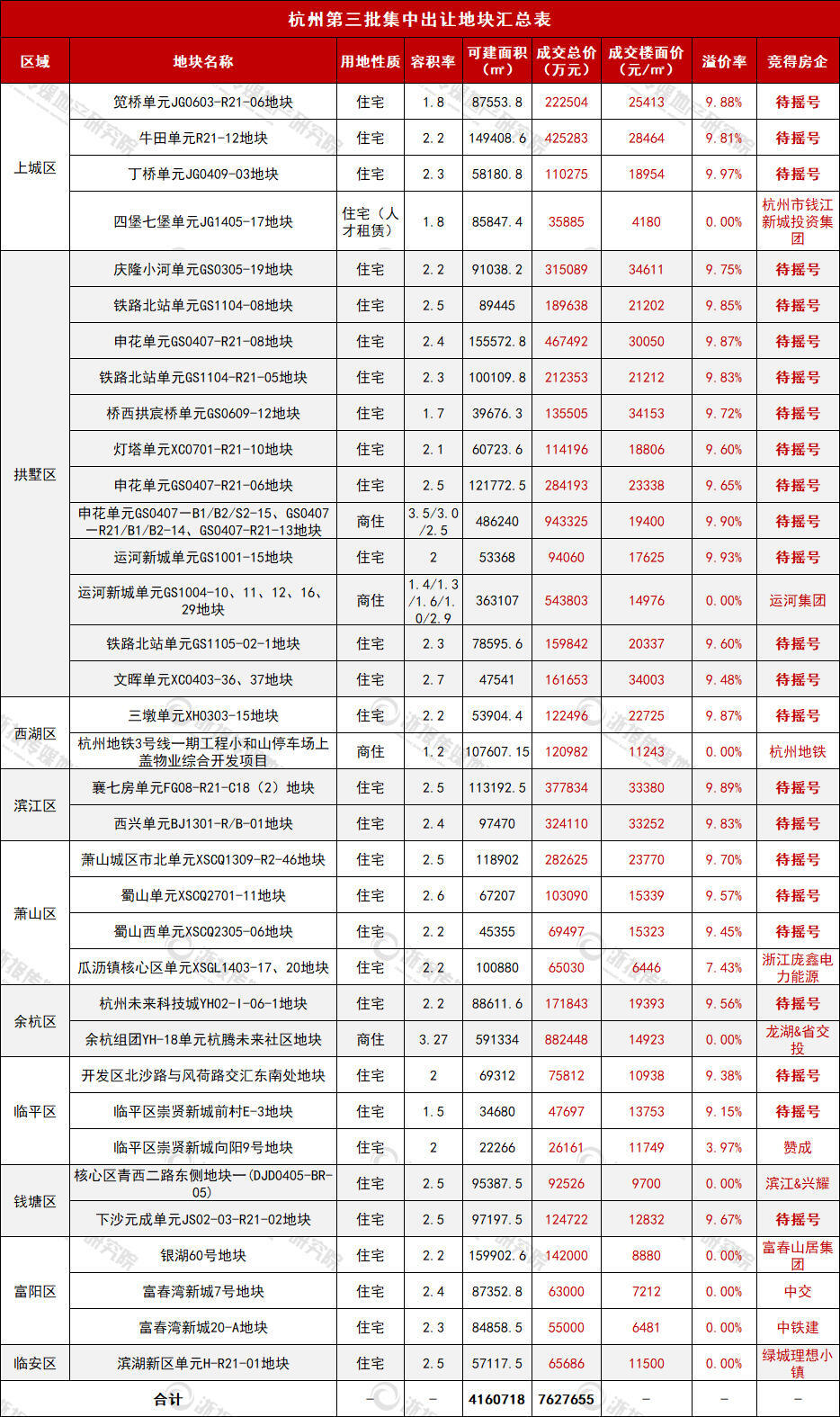 近七成需摇号 最低中签率<5% 杭州第三批土地超预期 全年成交破3100亿元